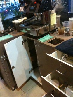 เจาะช่องต่อสายน้ำไฟและช่องเคาะกากกาแฟไว้แล้ว(ตามรูป)