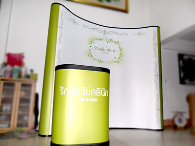 ฉากพร้อมเค้าเตอร์ สำหรับออกงานแสดงสินค้าหรืองานอีเว้นส์ ขนาดใหญ่พับเก็บได้ แถมฟรี เค้าส์เตอร์