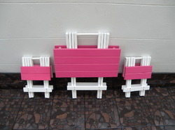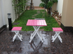 ชุดโต๊ะกาแฟสดสำหรับบริการลูกค้าที่มาใช้บริการดื่มกาแฟ ลักษณะของโต๊ะกาแฟ วัสดุที่ใช้ผลิตเป็นไม้ที่แข็งแรงทนทาน มีหลายสี ชมพู เขียว ฟ้าอมน้ำเงิน หรือเป็นลายไม้ สามารถประยุกต์ได้ตามสไตล์ของคุณ เช่น อาจจะจัดเป็นสวนย่อมเล็กๆ หรือประดับตกแต่งโต๊ะกาแฟเป็นอย่างอื่นได้ตามใจคุณเก้าอี้ สามารถพับได้ เก็บสะดวก ทนทานแข็งแรง ราคาโต๊ะกาแฟทั้งชุด เพียง 1,500บาท(พร้อมส่ง)