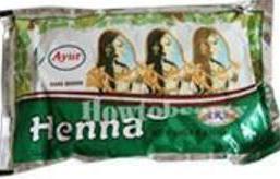 อายูร เฮนน่า ผลิตภัณฑ์สำหรับย้อมผม นำหนักสูทธิ 200 กรัม ส่วนประกอบสำคัญ: เฮนน่า,สีเสียด,มะขามป้อม