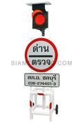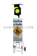 แผงกั้นจราจร แผงสามเหลี่ยมหยุดตรวจ สัญญาณไฟจราจรชนิดไฟกระพริบใช้พลังงานแสงอาทิตย์ ( Solar Cell )
