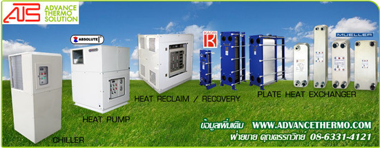 ผู้ผลิต - จำหน่ายฮีทปั๊ม (Heat Pump) เครื่องทำน้ำร้อนประหยัดพลังงาน, ชิลเลอร์ (Chiller) นำไปทำน้ำเย็น เพื่อหล่อเย็นเครื่องจักร, Plate Heat Exchanger เครื่องแลกเปลี่ยนความร้อนแบบแผ่น, ฮีท รีคัฟเวอรี่