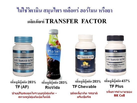 - สินค้า "Transfer Factor" ไม่ใช่ วิตามิน โปรตีน เกลือแร่ หรือ สมุนไพร ไร้คู่แข่ง จดสิทธิบัตรถูกต้อง เสริมระบบภูมิคุ้มกัน 437% ป้องกันไข้หวัดใหญ่2009 ได้อย่างมีประสิทธิภาพ