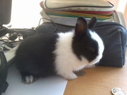 ขาย ลูกกระต่ายพันธุ์ Netherland Dwarf (ND) พันธุ์เล็ก เพศผู้ ตาสีเทา ตัวเป็นลายดัช สีขาวดำครึ่งตัวพอดี สุขภาพแข็งแรง100% (เพราะดูแลเองตั้งแต่เกิด) วัยกำลังซุกซน น่ารัก คลอดเมื่อวันที่ 8 มกราคม 2553