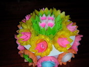 กระทงทำจากโคนไอศครีม ผสมสีผสมอาหาร ไม่เป็นอันตรายต่อสภาวะแวดล้อม เป็นอาหารของปลาได้และย่อยสลายได้ ลอยอยู่ในน้ำได้ไม่คว่ำ แม้ธูปเทียนดับ ก็ยังลอยได้อย่างมีสีสันสดใส สะดวกต่อการจำหน่าย มีหลากหลายรูปแบบ หลากหลายสีสัน ขนาด ศูนย์กลาง 5 นิ้ว คละสีคละแบบค่ะ ราคา ใบละ 25 บาท กระทงรูปหัวใจมีจำนวนจำกัด ขายใบละ 35 บาท นำไปขาย ปลีกวันลอยกระทงทั่วไป ขาย ราคา ใบละ 40-50 บาท ไม่รวมค่าจัดส่ง ไม่รวมธูปเทียนค่ะ