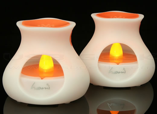 เหมาะสำหรับวางไว้ในห้องนอน ห้องน้ำ หรือ ห้องทำงาน สามารถสร้างได้ทั้งกลิ่นและบรรยากาศ ในโอกาศสำคัญ ๆ หรือ เพื่อเป็นการผ่อนคลายความเหนื่อยล้าจากการทำงาน โดยผู้ใช้ไม่ต้องใช้เทียนกลมเพื่อจุด แต่สามารถนำสาย USB ต่อพ่วงเข้ากับ คอมพิวเตอร์ของคุณ เปิดสวิสต์ จากนั้นเทน้ำหอมลงด้านบนซึ่งเป็นฟิลเตอร์ ท่านจะพบกับกลิ่นหอมอ่อนๆ จะระเหยออกมา และมีแสงจากเทียนด้านล่างเพื่อสร้างความโรแมนติกได้อีก และเพื่อความสมจริงเทียนด้านล่างเมื่อเป่าจะดับทันทีเหมือนเทียนจริง ๆ หรืออาจจะใช้ถ่าน AA 2 ก้อน เพื่อจุดเทียนไฟ LED ได้อีกด้วย ราคา 320 บาท