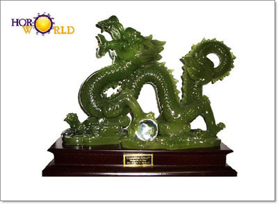 มังกรเขียวเนื้องานเรซิ่นคุณภาพดี ตั้งบนฐานไม้-.-
