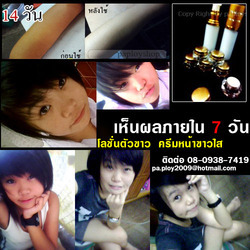 โลชั่นทาผิวขาว กระจ่างใส เห็นผลใน7-14วัน !!! ด้วยนวัตกรรมของ AHA และ BHA ที่รวมตัวเข้าด้วยกัน ที่ช่วยผลัดเซลล์ผิวที่ตายแล้วให้ผิวคุณขาว กระจ่างใสอย่างเป็นธรรมชาติ 520 บาท ขนาด 50 มก. ใช้ได้ 1เดือน Alphahydroxy Acids (AHA) ซึ่ง เป็นสารที่สกัดจากผลไม้หลายอย่าง หรือรวมเรียกว่ากรดผลไม้ (Fruit Acids) ประกอบด้วย Glycolic Acid สกัดจากอ้อย, Lactic Acid สกัดจากนม, Malic acid สกัดจากแอ๊ปเปิ้ล, Tartaric Acid สกัดจากองุ่น, Citric Acid สกัดจากผลไม้รสเปรี้ยว สารเหล่านี้มีคุณสมบัติช่วยเร่งให้เซลล์ผิวผลัดเร็วขึ้น ทำให้ผิวกลับมามีสภาพดีขึ้น เมื่อใช้เป็นประจำจะทำให้ผิวพรรณสดใส Salicylic Acid (BHA) มี ประสิทธิภาพในการลอกเซลล์ผิวเหมือนกับ AHA แต่ BHA จะพิเศษกว่าตรงที่ มันเป็นกรดที่ละลายไขมัน จึงทำงานโดยลงไปล้างไขมันที่ติดตามรูขุมขนให้หลุดออก โลชั่น1ขวด = ทาแขนกับขาใช้ได้เกือบ 1 เดือน ทั้งตัวประมาณ2อาทิตย์ ใช้แล้วหยุดได้ค่ะ ตามที่พอใจ ครีมหน้า ใส 1 กระปุก = ปะมาน 1 เดือนค่ะ 7วันกระจ่างใสขึ้น ประมาณ14วันผิวจะขาวขึ้น ถ้าอยากขาวกว่านั้นก็ใช้ไปเรื่อยๆก็ได้ค่ะ ไม่มีผลข้างเคียง เพราะพลอย ก็ใช้อยู่