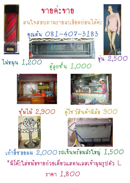 ขายรถเข็นพร้อมลัง หุ่น ตู้ลูกชิ้น เก้าอี้ซอย ตู้โชว์สินค้า ซุ้มไม้ เคาน์เตอร์ก๋วยเตี๋ยว