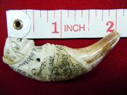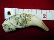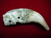 เขี้ยวหมี ลป.กาหลง เขี้ยวแก้ว ใช้เลเซอร์จารอักขระ อย่างงดงามและลงตัวมาก เชื่อกันว่ากันทั้งคุณไสย เมตตามหานิยม แคล้วคลาด พกติดตัวแล้วศัตรูห่างไกลผู้คนเกรงขาม