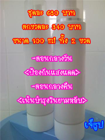 สารสกัดจากธรรมชาติต่างๆ <ดารากะไฮโซซื้อ25000กว่าบาทแนะ> ทาแร้วไม่แพ้แน่นอนค่ะ เป็นสินค้านำเข้านะค่ะ เพื่อนของพ่อซื้อมาจากเมกา แล้วเอามาขายให้ดาราไฮโซ ใช้กัน ตอนนี้ราคาที่ยังไม่ลด แบ่งขาย 100 มิล อยู่ที่ 680 บาท ได้ 2 ขวดนะค่ะ สำหรับตอนกลางวัน มีผสมกันแดดให้ด้วยสำหรับออกแดด สำหรับตอนกลางคืน เน้นบำรุงเพราะมิได้ออกแดด จะซื้อเดียวๆก้อไม่ว่ากัน ถ้ามีคนร่วมซื้อเยอะ 10 ขวดขึ้นจะลด10% มีรูปนะค่ะ ขอบคุณนะค่ะ ไม่ซื้อไม่ว่ากันจ้า มีรูปก่อน-หลังแล้วก้อรูปครีมนะคะ