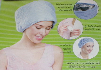 ใน 1 ชุด ประกอบด้วย หมวกอบไฟฟ้า ขนาดเส้นผ่านศูนย์กลาง 24 ซม. ลึก 15 ซม. และ หมวกผ้าคลุมศีรษะ