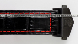 - สายหนังแท้ ลาย จรเข้สีดำ ตัดเย็บด้วยด้ายสีแดง
