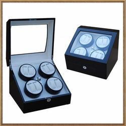กล่องหมุนนาฬิกา หรือ Watch Winder สำหรับนาฬิกาแบบออโตเมติก 8 เรือน 4 rotor พร้อมปุ่มควบคุม 2 ปุ่ม (ปุ่มละ 2 ชุด) ตัวกล่องทำจากไม้ MDF ลงสีแบบไฮกรอสสีดำเงาเปียนโนและสีน้ำตาลวีเนียร์ลายไม้สัก ภายในบุด้วยกำมะหยี่สีครีม สวยงามดู Hi Class สามารถวางโชว์ได้ไม่อายใคร คุณภาพงานเนี๊ยบสุดๆ ด้านหน้าเป็นอคริลิคใส สามารถมองเห็นนาฬิกาได้ขณะหมุน ภายในใช้มอเตอร์คุณภาพสูงของญี่ปุ่นยี่ห้อ Mabuchi ทนทาน หมุนเงียบ แทบไม่ได้ยินเสียง