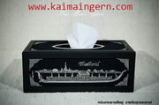 สินค้ามีมากมายหลากหลายขนาดตกแต่งลายไทย เช่น กล่องตะเกียบ กรอบรูป อัลบัมรูป ที่เขี่ยบุหรี่ พวงกุญแจ กล่องไม้นามบัตร สมุดโน๊ต กระเป๋าใส่เศษสตางค์ เป็นต้น เพื่อมอบเป็นของที่ระลึกหรือของชำร่วยตามงานพิธีต่างๆ