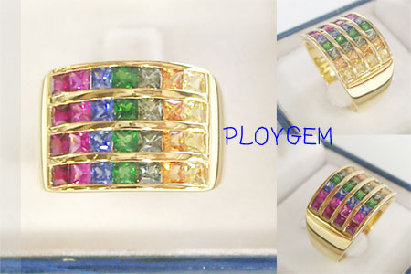 แหวนทองคำแท้ แหวนผู้ชายประดับด้วยพลอยแท้ ดีไซน์ไล่เฉดสี ไม่เหมือนใคร