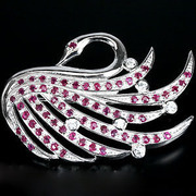 ลักษณะ : เข็มกลัดลายหงส์ประดับพลอยทับทิม เป็นพลอยแท้น้ำงาม