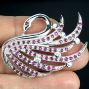 เข็มกลัดลายหงส์ประดับพลอยทับทิมแท้ 4.22 กะรัต(3155)