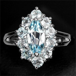 แหวนพลอยแท้โทปาสสีฟ้าสวย 2.45 กะรัตทรงมาคีหายาก(3124)