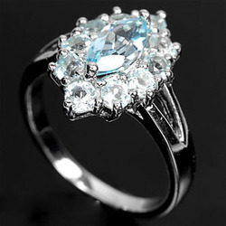 ลักษณะ : แหวนเงินประดับพลอยแท้โทปาส เป็นพลอยแท้น้ำงาม สีฟ้า