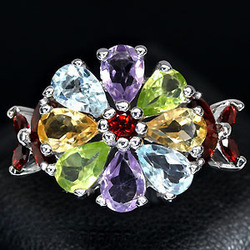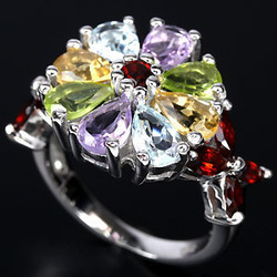 ชื่อสินค้า : แหวนเงินประดับพลอยแท้โทปาส แอเมทิสต์ ซิทริน โกเมน
