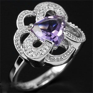 แหวนพลอยแอเมทิสต์ทรงสามเหลี่ยมและซัฟไฟร์ขาว(2995)