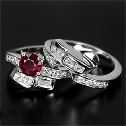 แหวนคู่รักประดับพลอยแท้ทับทิมและซัฟไฟร์สีขาว(2702)