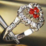 แหวนเงินชุบทองคำขาวประดับพลอยซัฟไฟร์สีแดงกลางหัวใจ (2552)
