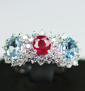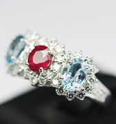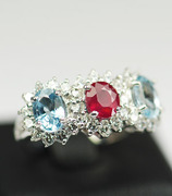 แหวนพลอยทับทิมกับอะความาลีนด้านข้าง 3 เม็ดเรียงกันล้อมด้วยเพชร (2555)