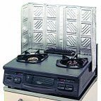 แผ่นกันความร้อน ป้องกันความร้อน ไม่ให้กระจาย ช่วยประหยัดแก๊ส และป้องกันน้ำมัน หรือเศษอาหารไม่ให้เปื้อนฝาผนัง