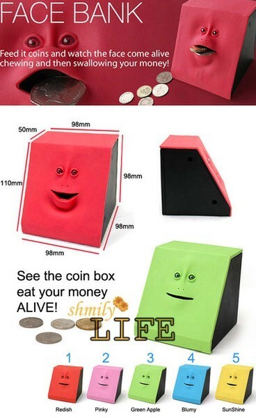 กระปุกกินเหรียญที่สามารถอ้าและ ค่อย ๆ กลืนเหรียญลงไปใบหน้าสามารถขยับปากเพื่อทำท่ากลืนเหรียญได้ มีเซ็นเซอร์ขนาดเล็กอยู่ที่ดวงตา เมื่อเซ็นเซอร์ตรวจพบเหรียญวางอยู่ที่ปากกลไกก็จะเริ่มทำงานโดยแสดงท่ากลืนเหรียญค่ะ ขายดีในญี่ปุ่นค่ะ ขนาด 9.5*9.5*10cm.