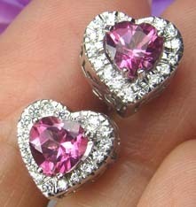 ต่างหูโทปาสสีชมพู(Pink Topaz) 2.05 กะรัตทรงหัวใขเพชรล้อมรอบ