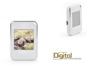 เป็นพวงกุญแจ สำหรับเก็บไฟล์รูปภาพสำคัญพิเศษของคุณ พกติดตัวไว้ดูได้ทุกที่ทุกเวลา หน้าจอกว้าง 1.5" เก็บภาพได้ 107 ภาพ พร้อมนาฬิกาดิจิตอลสามารถเลือกดูรูปภาพหรือดูเวลา และยังมีปฎิธินให้อีกด้วย ภายในมีแบตเตอรี่แบบชาจไฟได้สามารถเปิดดูภาพต่อเนื่งได้นาน 4-5 ชั่วโมง ตัวสีขาวกรอปด้านข้างสีเงิน ขนาดเล็กกระทัดรัด 52X42X11 ม.ม.