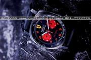 - หน้าปัด สีดำ วง chronograph สีแดงสด, ข้างตัวเรือน ปั้มตรา Ferrari