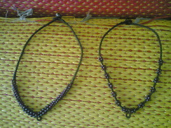สร้อยคอ ลูกปัดโกเมน ถักร้อยลายด้วยเชือกเทียน มีห่วงสำหรับห้อยพระ
