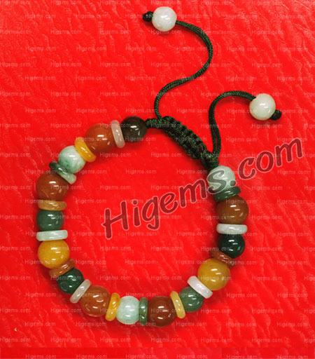 สร้อยประคำหยก 3 สี ฮก ลก ซิ่ว (Multicolor Burma Jade Bracelet)