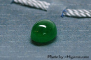 หยกพม่าสีเขียว เจียแบบหลังเบี้ยรูปไข่ (Green Burma Jadeite)