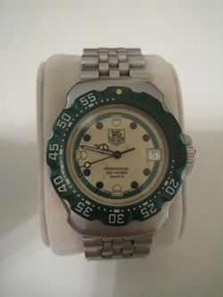 ขาย tag heuer f1 classic qaurtz date ขนาด boy size หน้าปัดดำพิมพ์พรายน้ำ ขอบเขียวหมุดปรับเทียบเวลา ตัวเรือนและสาย steel สภาพ 80%