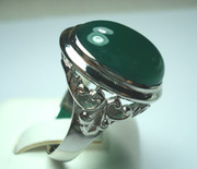 แหวนเงินชุบทองคำขาวประดับพลอย 10.60 กะรัตสีเขียวสวยเหมือนหยก