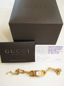 ขายนาฬิกา Gucci สีทอง ของแท้ สายโซ่ สภาพ 95 % เป็นสแตนเลสเคลือบทองแท้ ไม่ใช่ทองชุบ ราคา 7500 บาท ต่อรองได้ค่ะ รุ่นนี้หายากแล้วค่ะ สนใจติดต่อ บุษบา 081-8015678