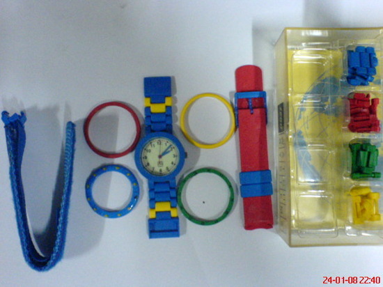 ตัวเครื่องของ CITIZEN สายพลาสติคตัวต่อของ LEGO จาก เดนมาร์ค สาย sport และสายผ้า หน้ากากครอบ กล่อง คู่มือสินค้า
