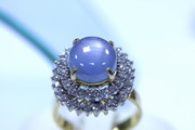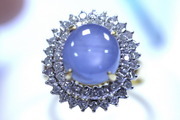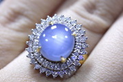 แหวนทองคำ 90% ประดับ ยี่หร่า 6.02 กะรัต ยี่หร่าเม็ดนี้สวยมาก ถึงจะเป็นของเก่าแต่ดูสดใสมากเลยนะคะ เกือบๆเหมือนจะมีสตาร์ด้วยล่ะคับ แต่มีรอยแตกด้านข้างตรงหนามเตยซ้ายด้านล่างน่ะ ประมาณ 20% เพชร 27 เม็ดๆละประมาณ 2 ตังค์และ 24 เม็ดๆละ 1.5 ตังค์ เพชรเหลี่ยมกุหลาบ รวมน้ำหนักเพชรทั้งหมด 0.90 กะรัต น้ำหนักรวมทั้งหมด 8.2 กรัม ด้านหน้ากว้าง 1.7*1.7 ซม.