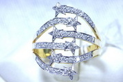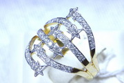 แหวนทองคำ 90% ประดับเพชรเกสร เพชรขาวสวยไฟดี เพชร 6 เม็ดๆละ 2.5 ตังค์และเพชร 30 เม็ดๆละ 1 ตังค์ น้ำหนักเพชรรวม 0.45 กะรัต ทองคำหนัก 3.6 กรัม