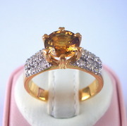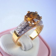 แหวนบุษราคัมบางกะจะ(จันท์)สีธรรมชาติก้านประดับเพชร(เตยโบราณ)