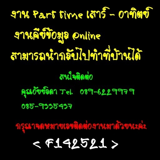 งาน Part time เสาร์ - อาทิตย์ งานคีย์ข้อมูล Online สามารถนำกลับไปทำที่บ้านได้