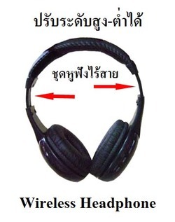 3. WIRELESS HEADPHONE SYSTEM สามารถรับดูและรับฟัง จาก โทรทัศน์ วิทยุ VCD DVD (ได้โดยไม่ต้องเสียบสายสัญญาณ เพราะเป็นการส่งคลื่นสัญญาณผ่านเต้ารับสัญญาณ ไปยังหูฟังไร้สาย) เพียงคุณกดปุ่ม Reset 1 ครั้ง ตรงหูฟัง แล้วตามด้วยกดปุ่ม Scan อีก 1 ครั้ง แค่เนี๊ยรายการโปรดของคุณ (ที่คุณอยากได้ยินเสียง เพียงลำพัง) ก็จะเข้ามาอยู่ในหูฟังแล้ว ไม่ต้องกวนใจใครด้วยค่ะ
