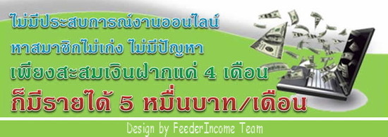 ลงทุนเพียง700บาท 4เดือนโดยที่ไม่ต้องหาสมาชิก, ไม่ต้องรักษายอด, ไม่ต้องไปอบรม ไม่ต้องการหาสมาชิก ฝากเงิน 700 บาท/เดือน 4 เดือน เดือนที่5 เริ่มมีกำไร หลังเดือนที่19 รับรายได้ตลอดชีวิต ขั้นต่ำ 5 หมื่นบาท/เดือน ฟังอีกทีเพียงแค่ฝากเงินน่ะครับ โดยที่คุณไม่ได้ทำอะไรเลยคุณก็มีสิทธ์รับ 50,000 บาท/เดือนได้ ศึกษาข้อมูลเพิ่มเติม http://www.feeder-asteria.com/?ref_id=127" target="_blank">http://www.feeder-asteria.com/?ref_id=127 สนใจติดต่อ เอกชัย 086-3636540 http://www.feeder-asteria.com/?ref_id=34" target="_blank">