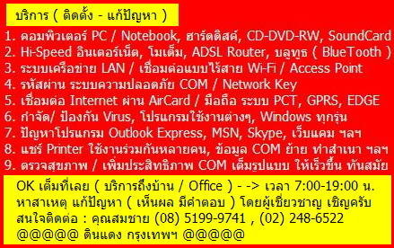นี่เลย 08-51-999-741 ( = ซ่อมคอมพิวเตอร์นอกสถานที่ / ซ่อมคอม / ซ่อมคอมพิวเตอร์ / ซ่อมคอมถึงบ้าน = ) โดยมืออาชีพ สนใจติดต่อ