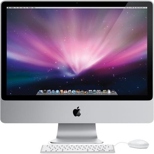The all-in-one iMac packs a complete, high-performance computer including the latest Intel Core 2 Duo processors into a beautifully thin, anodized aluminum and glass design. The latest Intel Core 2 Duo processor with advanced 45-nm process technology and 6MB of shared L2 cache, allowing you to run your applications faster and more efficiently than ever before. This iMac features a glossy 24-inch widescreen display and NVIDIA GeForce graphics, that gives you a blow-you-away level of detail and realism in games, three-dimensional graphics, high-resolution photos, and high-definition video that comes alive with rich, vivid color. Built into the top of iMac is an iSight camera. You'll hardly notice it's there until you want to launch iChat, Photo Booth, or iMovie. iSight is easy to use and highly advanced. The remarkable picture quality and color accuracy make this tiny feature huge. With iLife '09, Mac OS X Leopard, built-in wireless, speakers, and ultrathin anodized aluminum Apple Keyboard, you'll be creating, sharing, surfing, and playing within minutes of opening the box. 24 Glossy Widescreen TFT Active-Matrix (1920 x 1200, 385 cd/m2, 750 - 1 contrast ratio, 178 H/V viewing angle) Liquid Crystal Display Built-in iSight Camera with Microphone NVIDIA GeForce 9400M with 256MB GDDR3 Shared Video Memory Slot-loading 8x SuperDrive (DVD+-RW DL/CD-RW) Stereo speakers with 24-watt Digital Amplifier AirPort Extreme (802.11a/b/g/n) Bluetooth 2.1 + EDR 10/100/1000BASE-T (Gigabit) Ports - 4 x USB 2.0 (2 x USB ports on keyboard), FireWire 800, Optical Digital Audio Output/Headphone out, Optical Digital Audio input/audio line in, Mini DisplayPort with support for DVI, and VGA, connections via Optional Adapter, RJ-45 (LAN) Approximate Unit Dimensions - 20.5 (H) x 22.4 (W) x 8.1 (D) Approximate Unit Weight - 25.4 Pounds