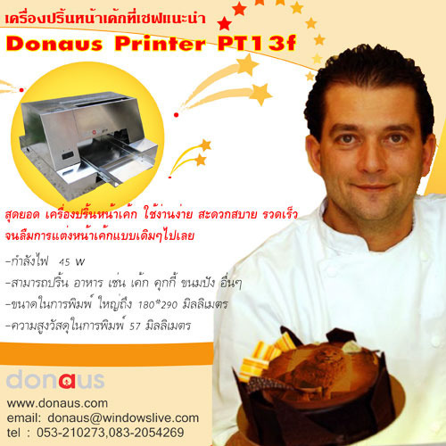 เครื่องพิมพ์อาหาร เครื่องพิมพ์หน้าเค้ก pt13f ด้วยเทคโนโลยีใหม่ล่าสุด ด้วยการพิมพ์ลงบนหน้าเค้า หรือแผ่นขนม ต่างๆ ได้ทันที พิเศษโปรโมชั่นสำหรับลูกค้าในช่วงน้ำท่วมลดทันที 10% !!!